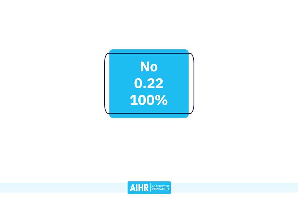 The tree-building process starts with the full dataset of 18 employees at the root node of our tree. Here, no splits have yet been considered. Therefore, this node now contains 100% of the dataset. The employees in this node have an average value of 0.22 on the target variable or, in other words, 22% have a turnover value of “Yes” and left the company. This implies that the majority of this root node belongs to the non-turnover class (“No”), so this is the value that our decision tree predicts for all employees in this node.