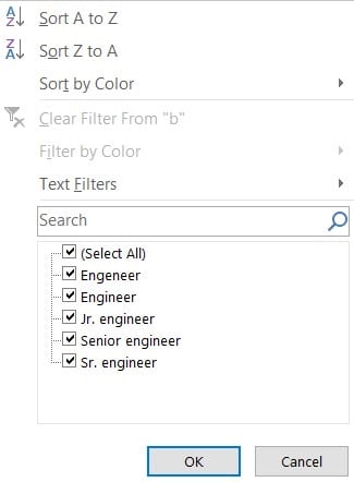 • Categorical variables (Gender: Male, Female) are easy to check in a table. Select the table column and check for errors or inconsistencies. Can you spot the discrepancies in columns in this picture?Example in Excel