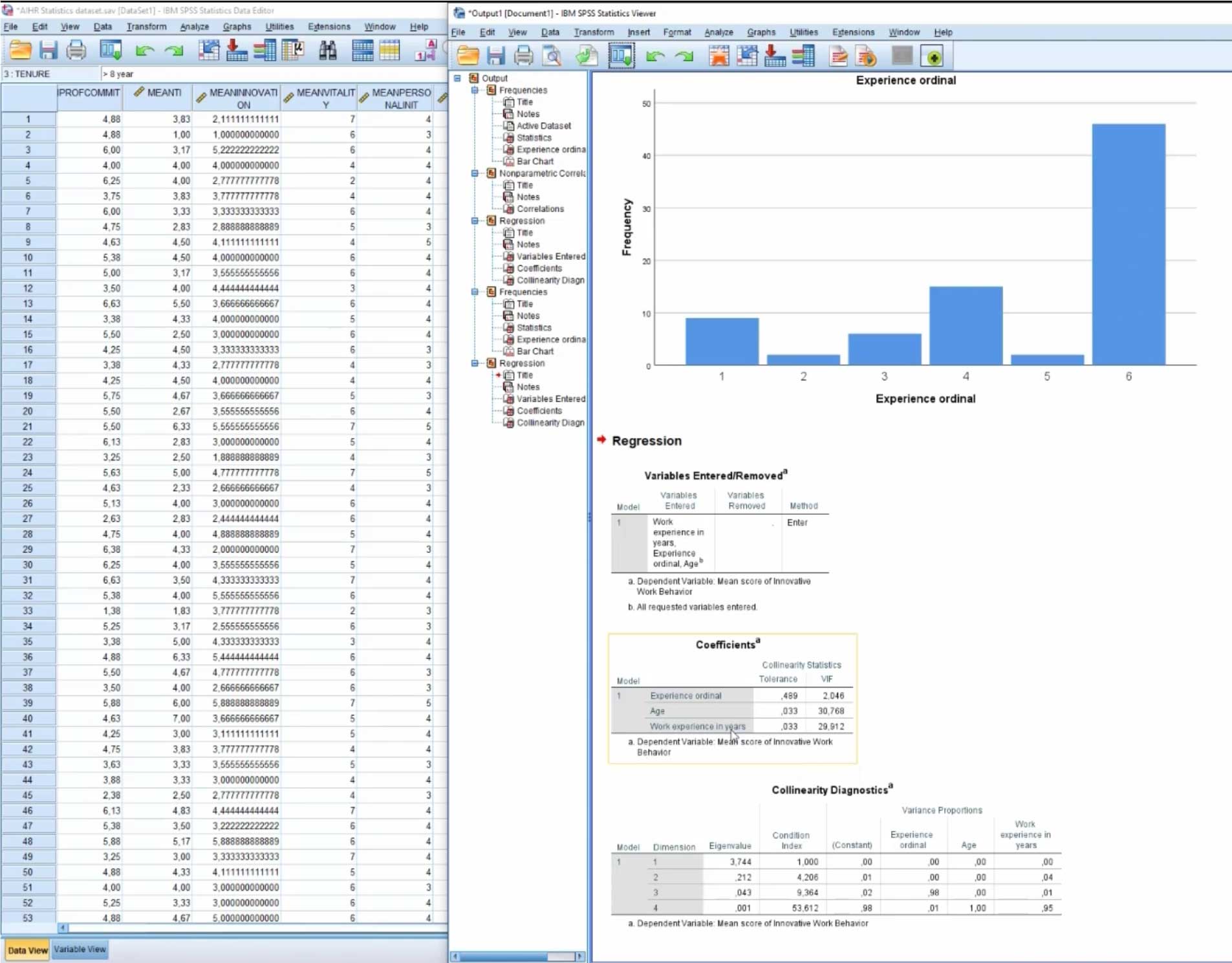A screenshot from the course with the data set on the left. Data is analyzed in SPSS.